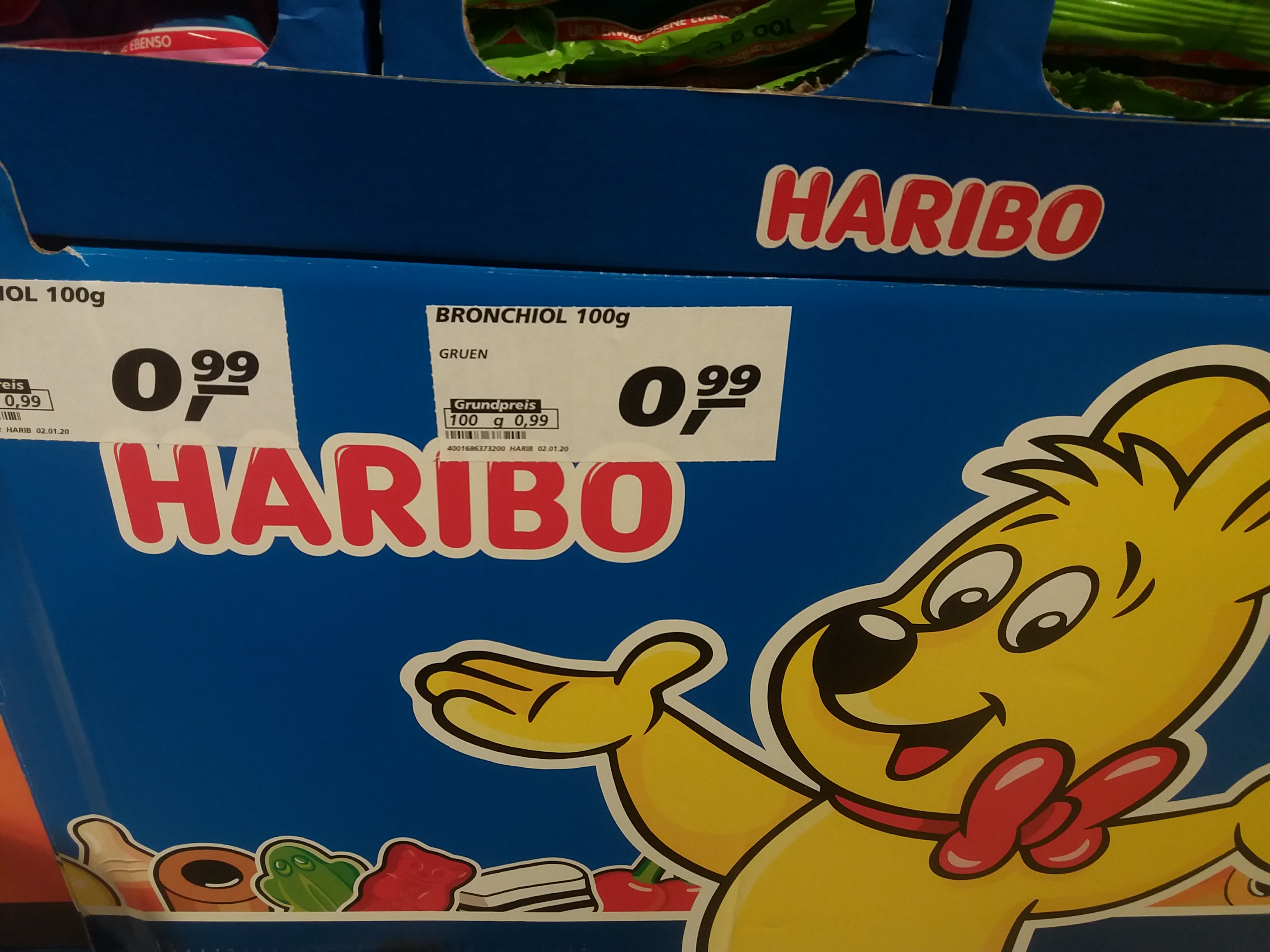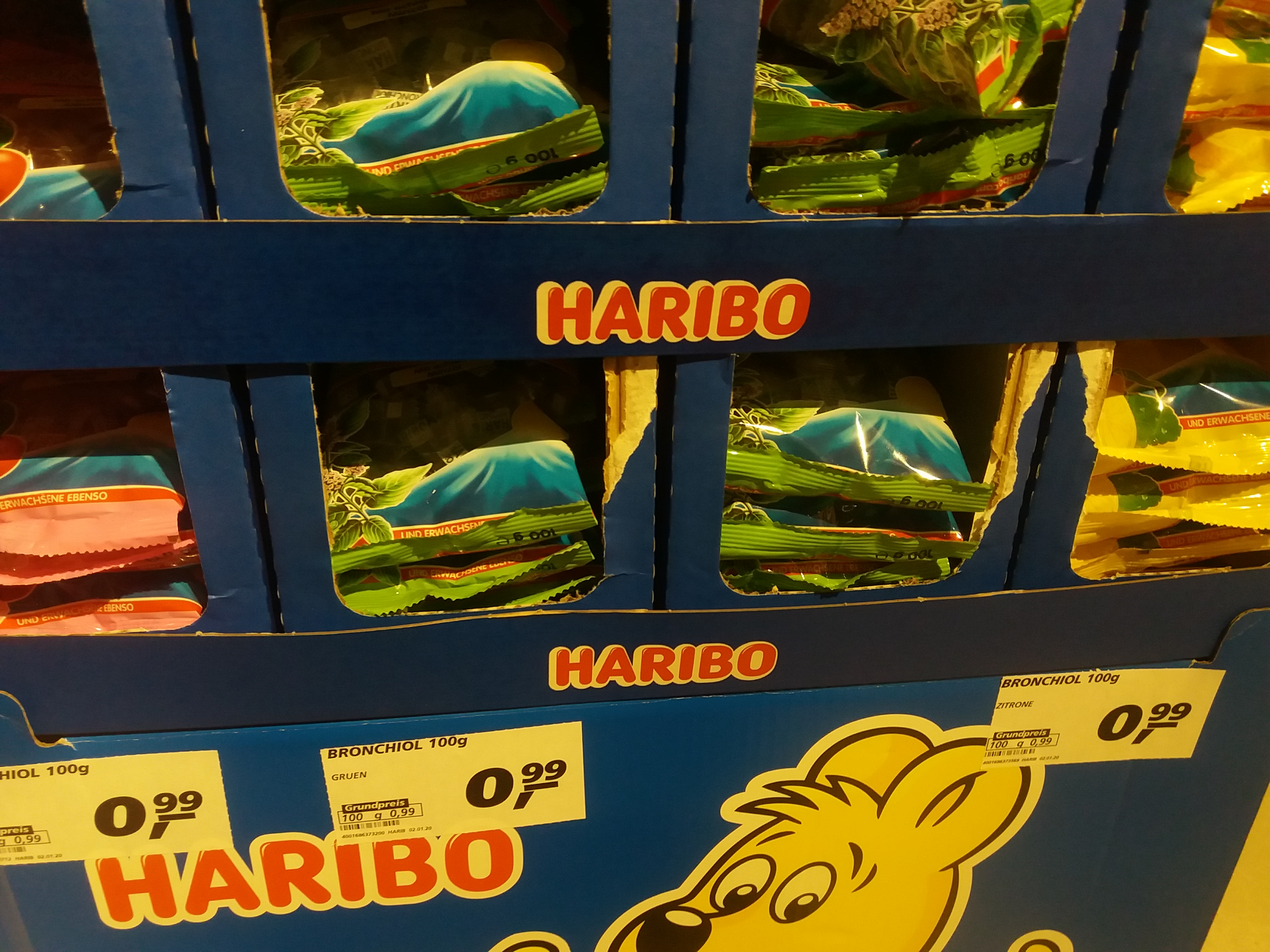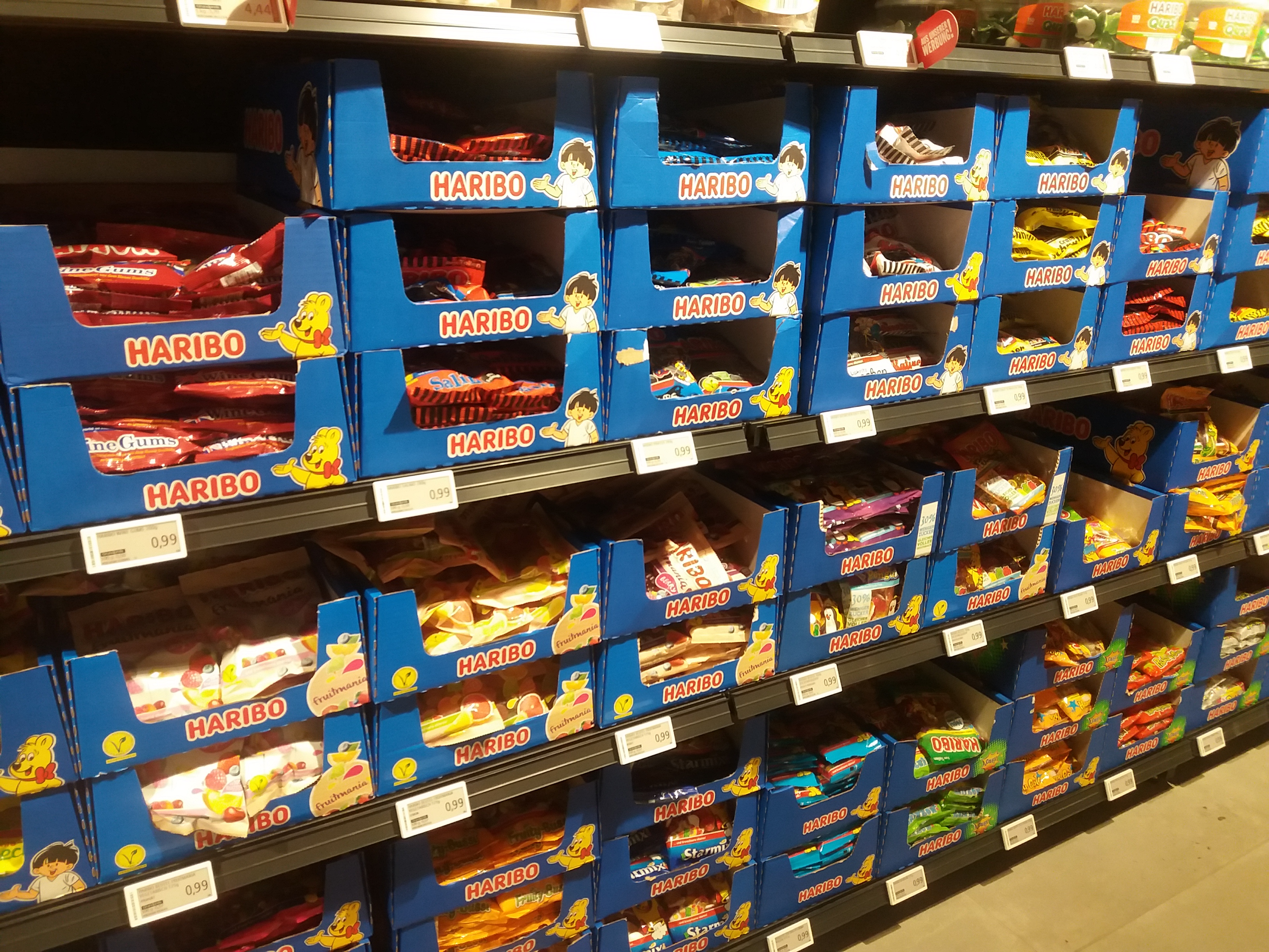 한국인들이 평소 생각하는 사이즈의 2배정도 되는 하리보가 0.99유로, 즉 한화로 1300원입니다. 한국에서 꽤 비싸게 주고 사먹었던 기억이 있는데 독일은 역시 하리보 강국답게 1유로도 안하는 가격에 살수 있어요.