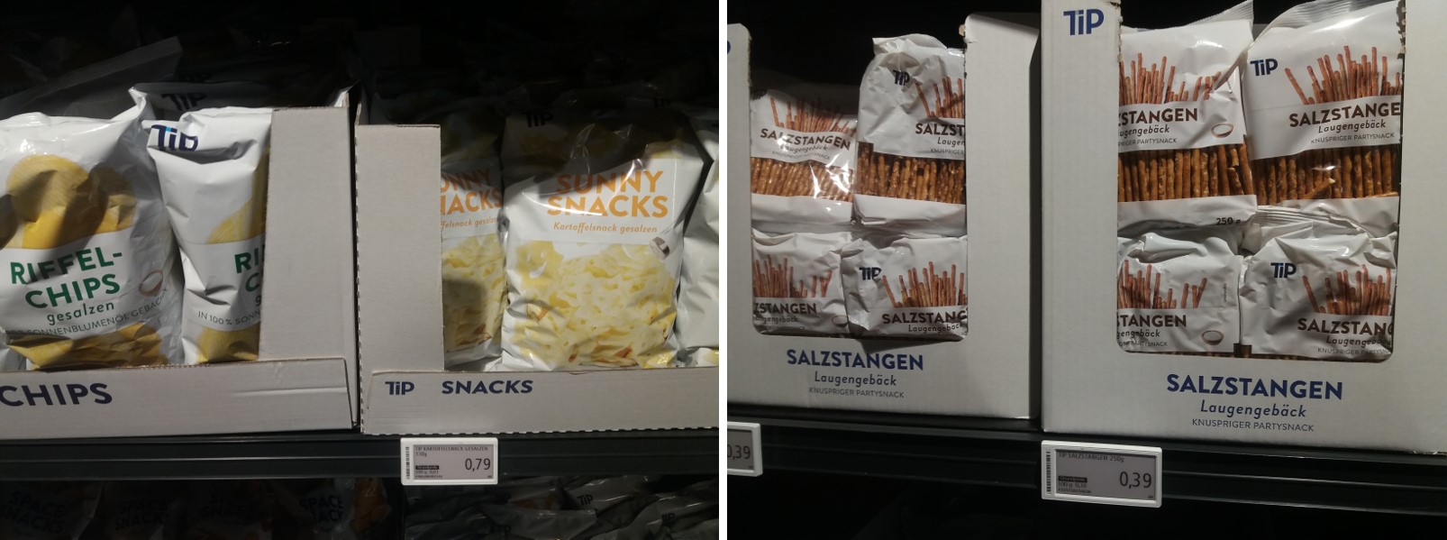 한국에 살때만 해도 "질소 과자" 라는 유행어가 생길정도로 큰 봉지 안에 절반정도 차있는 과자 가격이 몇천원씩 했던 기억이 있는데 독일에 그런 질소 과자는 없습니다.