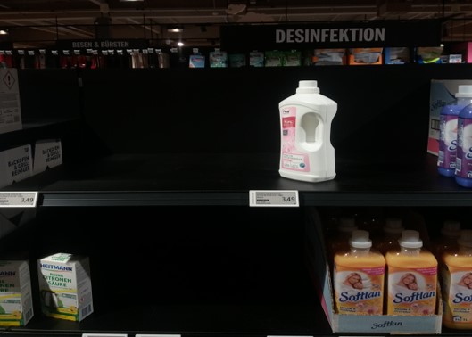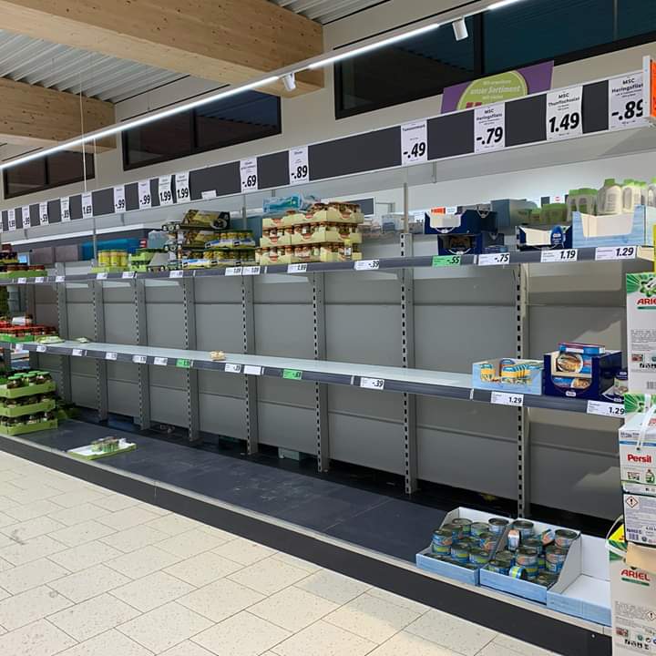 현재 독일 정부도 만일의 상황에 대비해 비상 식량 비축을 권고하고 있는데, 일부 도시 마트에서는 이미 사재기 현상이 발생하고 있고 약국에서 손세정제와 마스크는 구하기 어렵게 되었습니다.