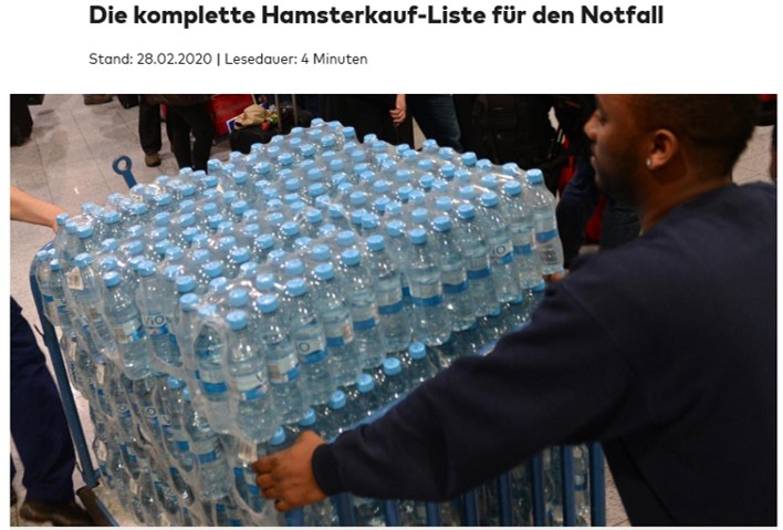 독일 Welt 신문지에서는 햄스터식 사재기 리스트까지 공유하며 코로나 바이러스에 대해 대비할것을 권고하고 있습니다.