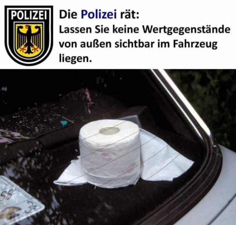 독일인들 사이에서는 SNS를 통해, 휴지가 귀중품이나 차에 두고 내리지 말라는 사진이 돌기도 한다.