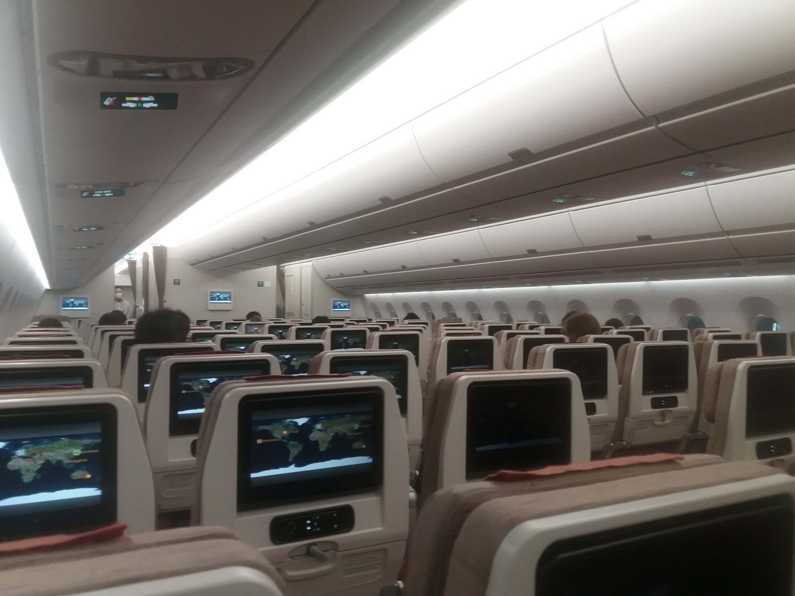 위 사진이 탑승 도중 찍은 사진이 아니고, 탑승이 완료된 후를 찍은 사진이에요. 승객들 간 거리를 최대한 멀리 두기 위해 탑승 인원을 최소한으로 제한하는 아시아나 항공의 배려가 굉장히 감사하더라구요. 이번에 다시 한번 국적기의 위대함과 소중함을 느꼈습니다.