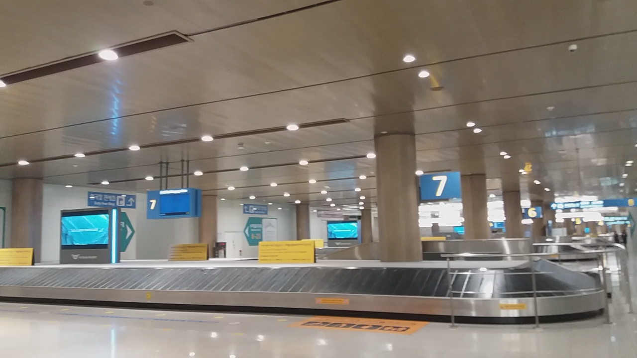 아래 사진은 인천공항의 썰렁한 수화물 찾는 장소를 찍은 사진입니다.