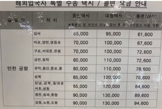 2. 해외 입국자용 공항 택시, 콜벤 이용 가능