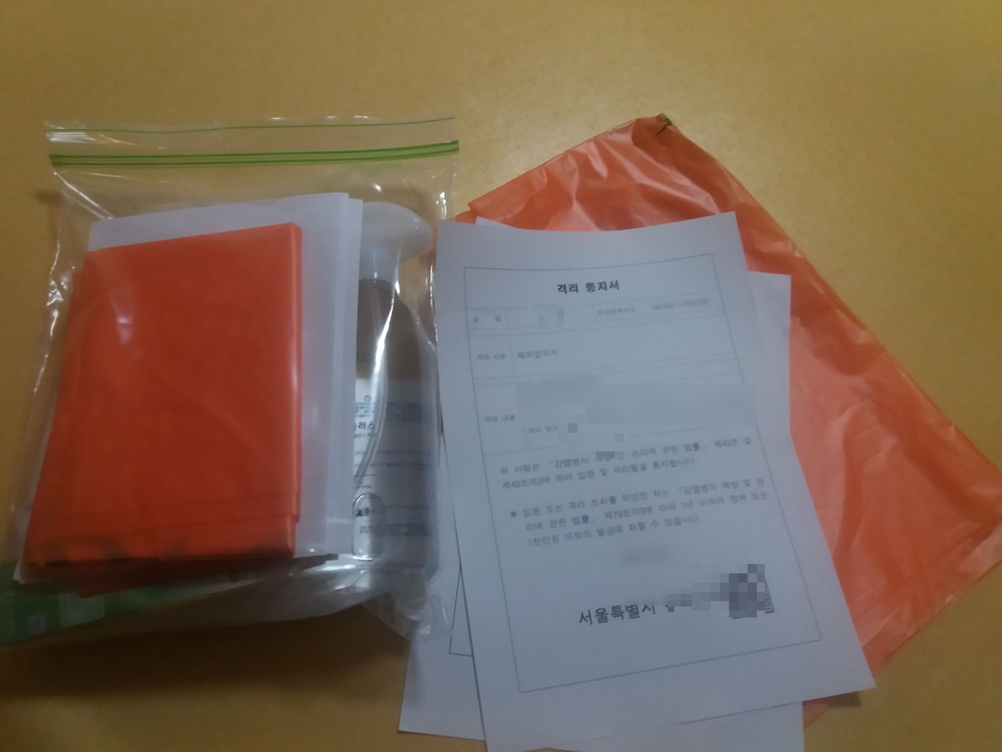 간혹 블로그를 보면, 해외입국자 자가격리자들에게 음식, 물, 라면, 과자 등이 든 구호 물품 한 박스가 제공된다는 포스팅을 많이 봤는데, 담당 공무원에게 여쭤보니, 서울시의 경우 해외 입국자에게는 그런 물품이 제공안되고 이렇게 진단키트와 쓰레기봉투만 지원이 된다고 하네요.
