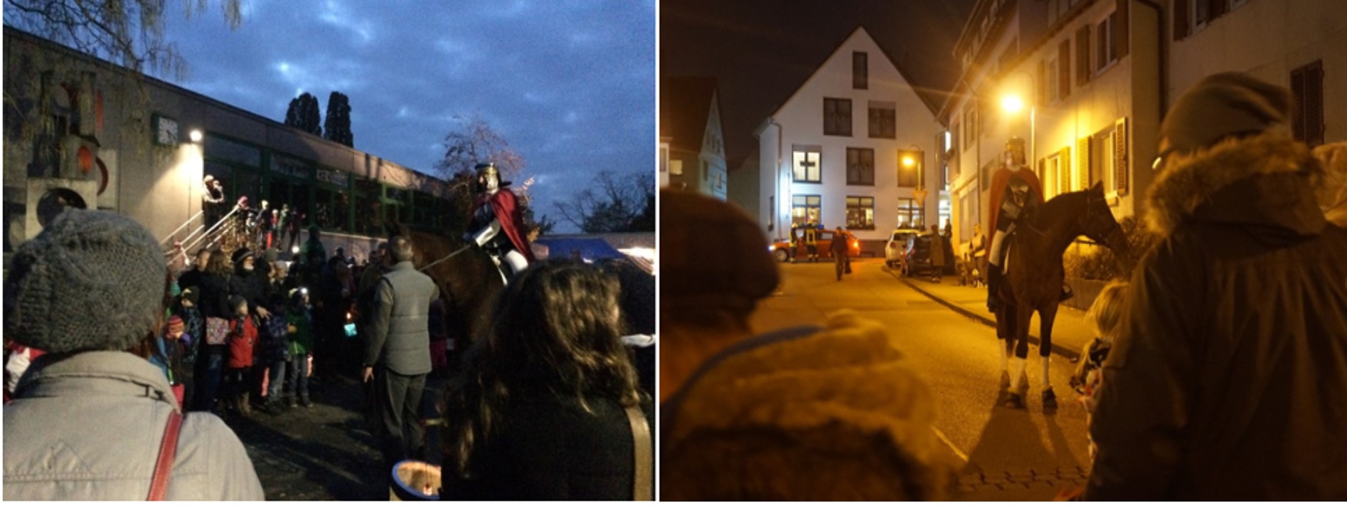 이 행사 열리는 Martinstag (마틴탁) 에는 아래 그림과 같이 성 마틴이 말을 타고 행렬을 이끄며 그 뒤로 아이들과 엄마들이 걸어가는데 아이들은 이날 램프를 들고 다닙니다.