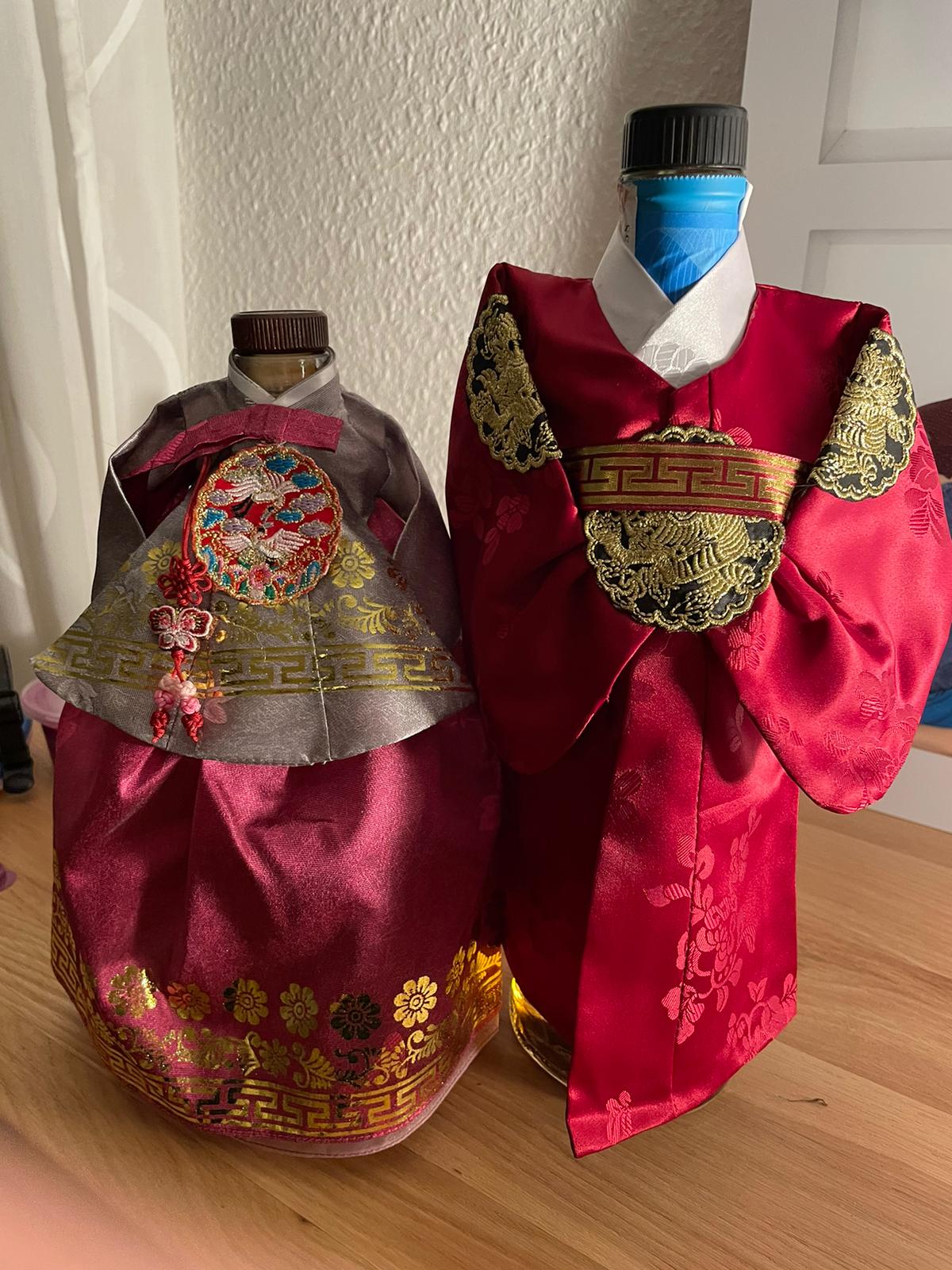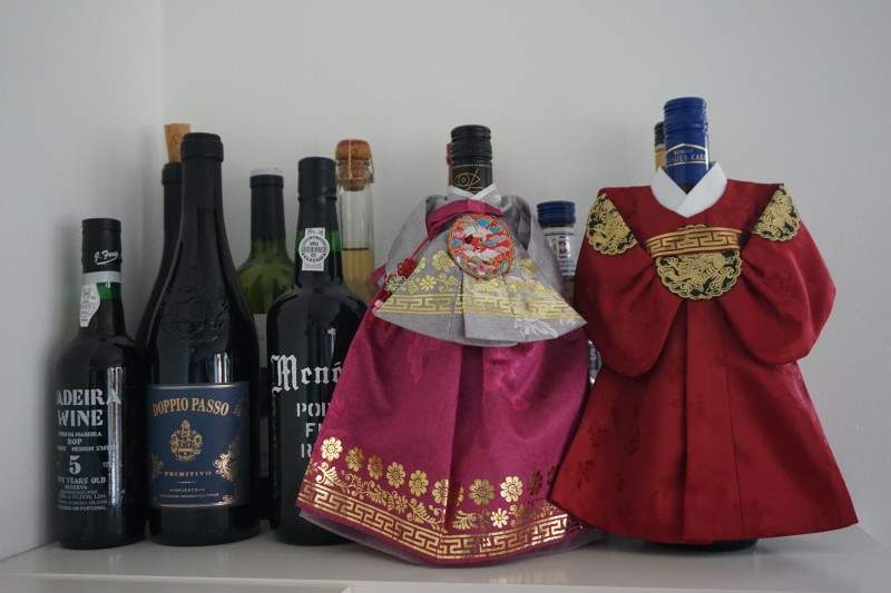 저희도 요즘 독일에서 와인을 즐겨마시는 터라, 저희 것도 사왔는데 생각보다 너무 이쁘더라구요. 한국스러움의 대표 명사, 한복으로 되어있어 독일인들에게 한국 문화를 알려주는 데도 좋을뿐 아니라, 예전 왕과 왕비의 의상으로 만들어져있어 그 선물에 있어 깊은 뜻을 더하기도 합니다.