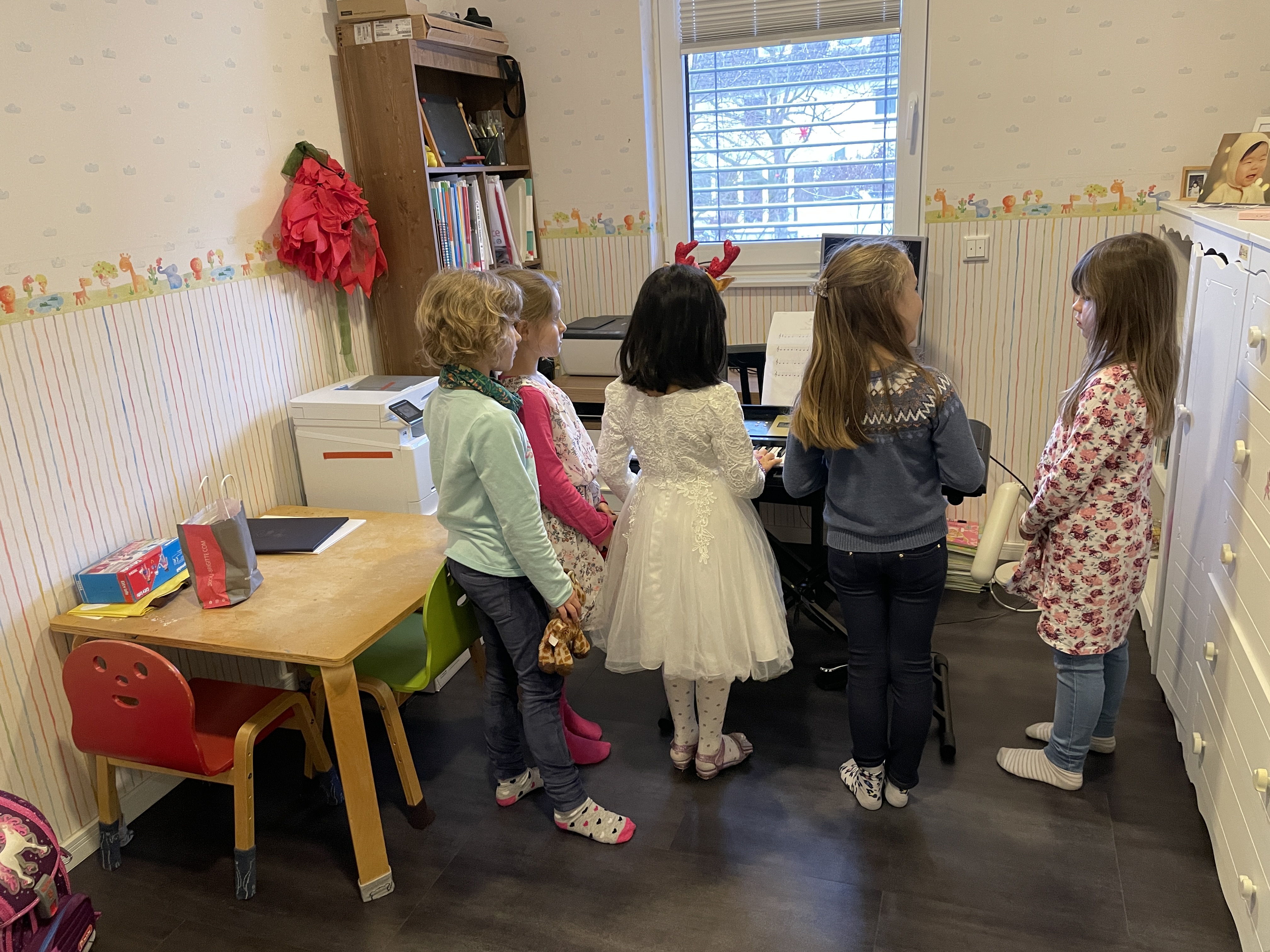 요즘 피아노를 배우는데 한창 재미를 들인 우리 딸이 친구들에게 피아노를 뽐내고 싶은지, 아이들을 불러 모으더니, 생일 축하 노래를 피아노로 치더라구요 ㅎㅎ