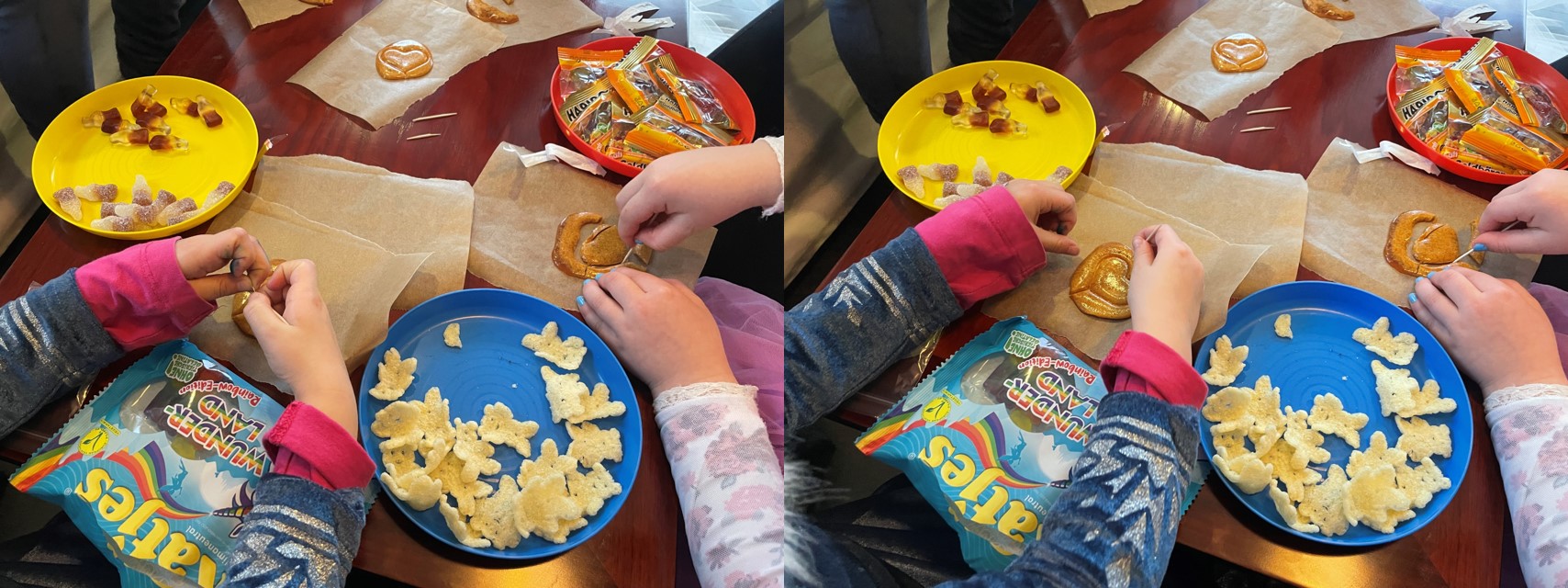 이 동그란 사탕에 하트 모양이 있는데, 이쑤시개로 모양을 따라 잘라내어 마지막에 하트만 남겨놓은 사람이 게임에서 이기는 것이라고 했더니, 독일 아이들도 신기했는지 곧잘 따라하더라구요.