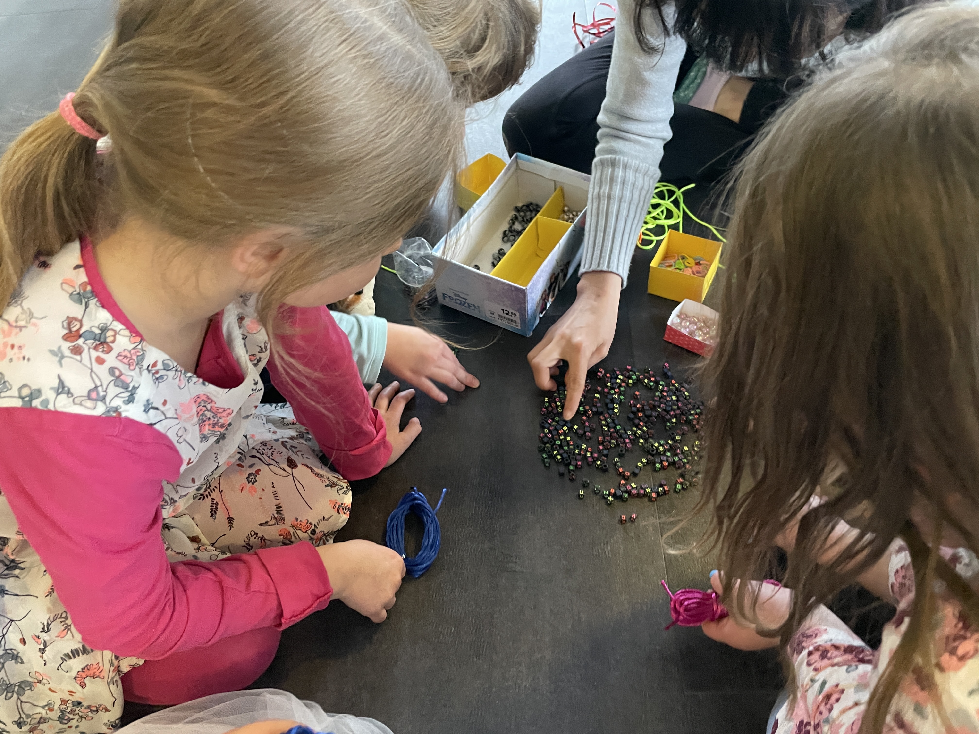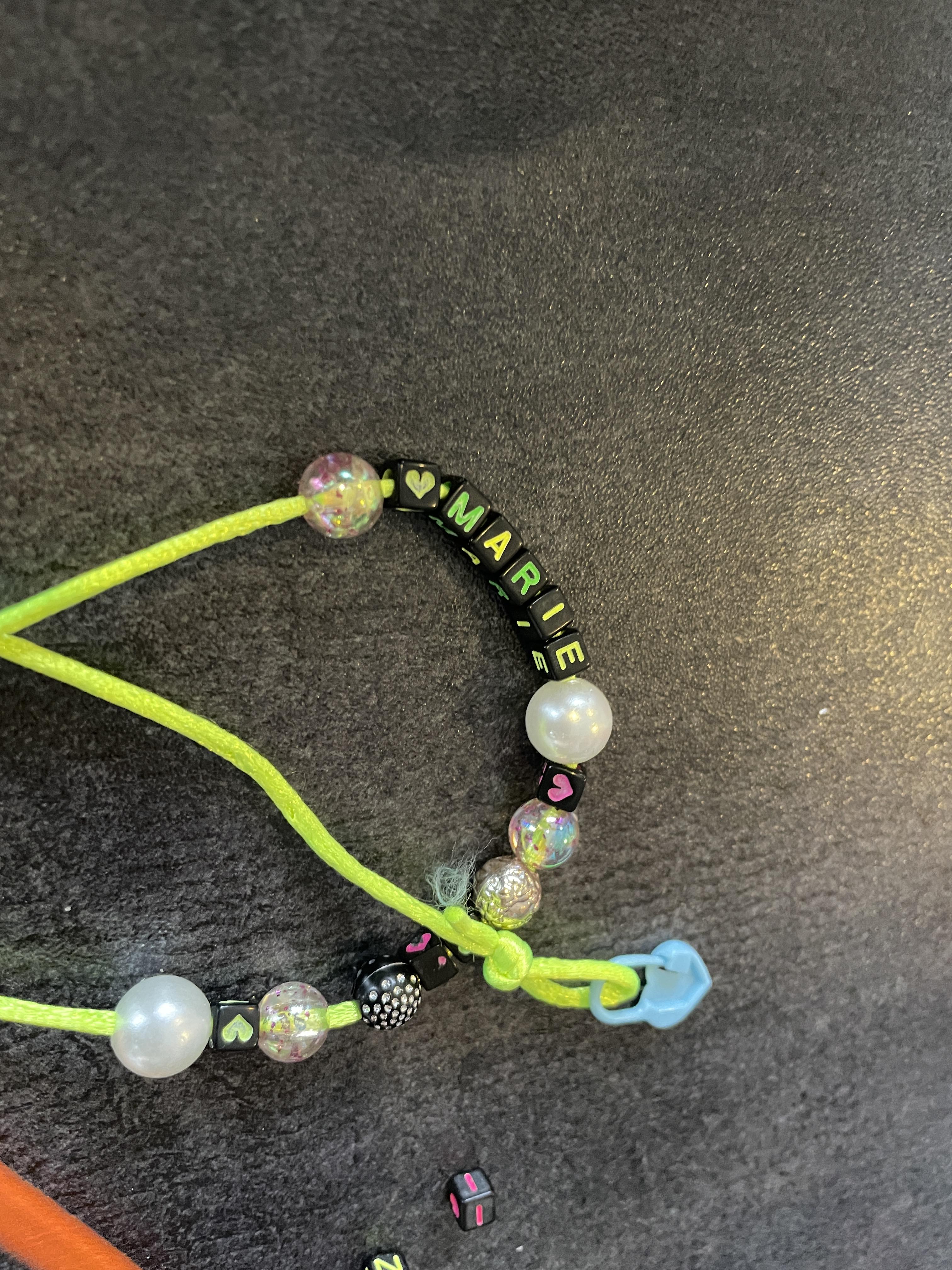 독일에서는 아이들용 마스크를 구하기 굉장히 어려워서, 아이들도 성인용 마스크를 쓰거나, 천 마스크 혹은 의료용 마스크를 많이 사용합니다. 그리고 아이들끼리 놀다보면 마스크를 잃어버리고 오는 것이 일상이라, 이렇게 마스크용 목걸이를 사용하면 좋을 것 같아 본인의 이름으로 만들수 있게, 문구점에서 알파벳이 적힌 구슬들을 구입해왔습니다.
