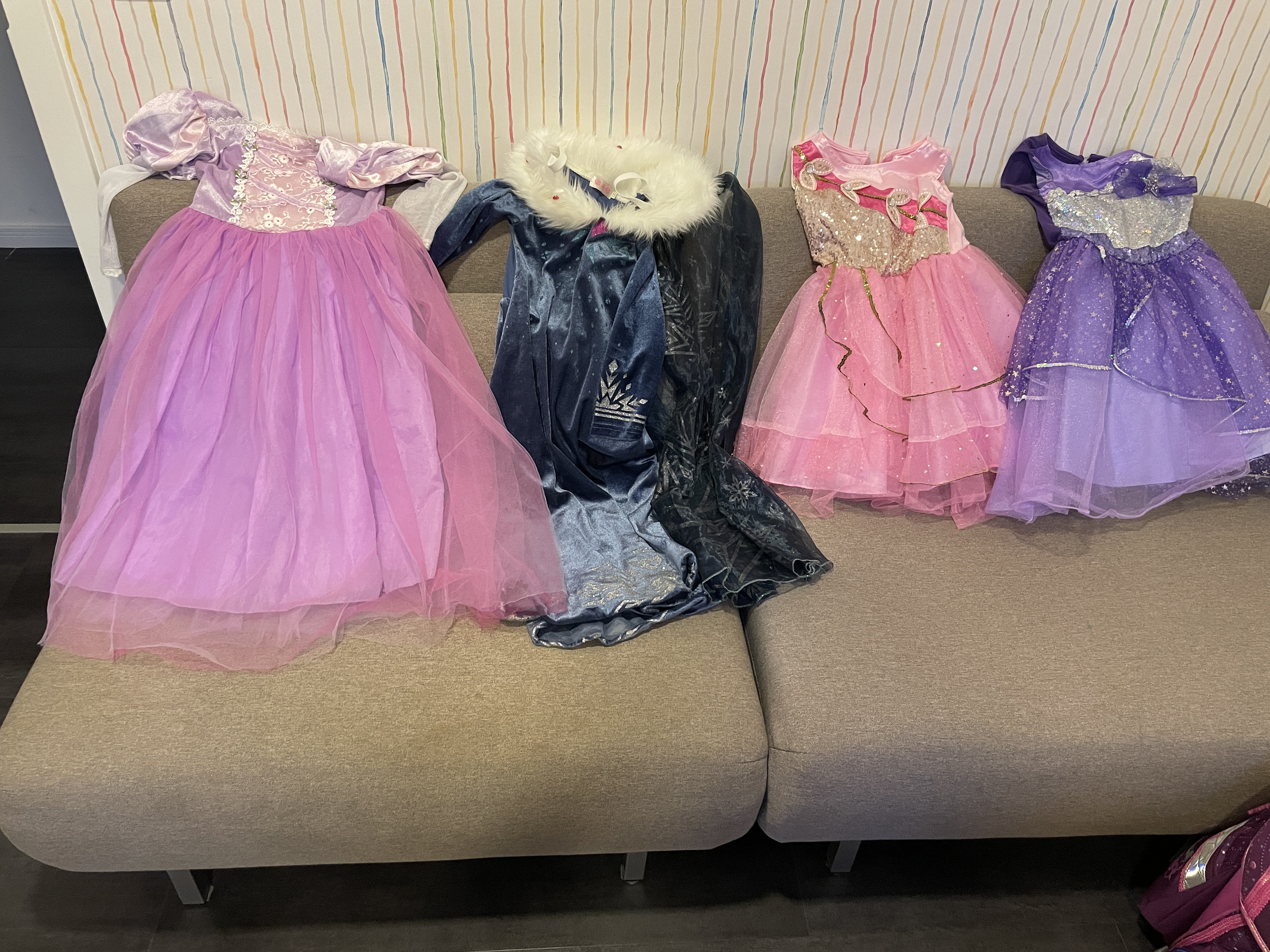 여기 독일 여자 아이들이 가장 좋아하는 노래는 겨울왕국 노래! 그래서 아이들에게 입힐 드레스도 종류별로 준비해놓았습니다.