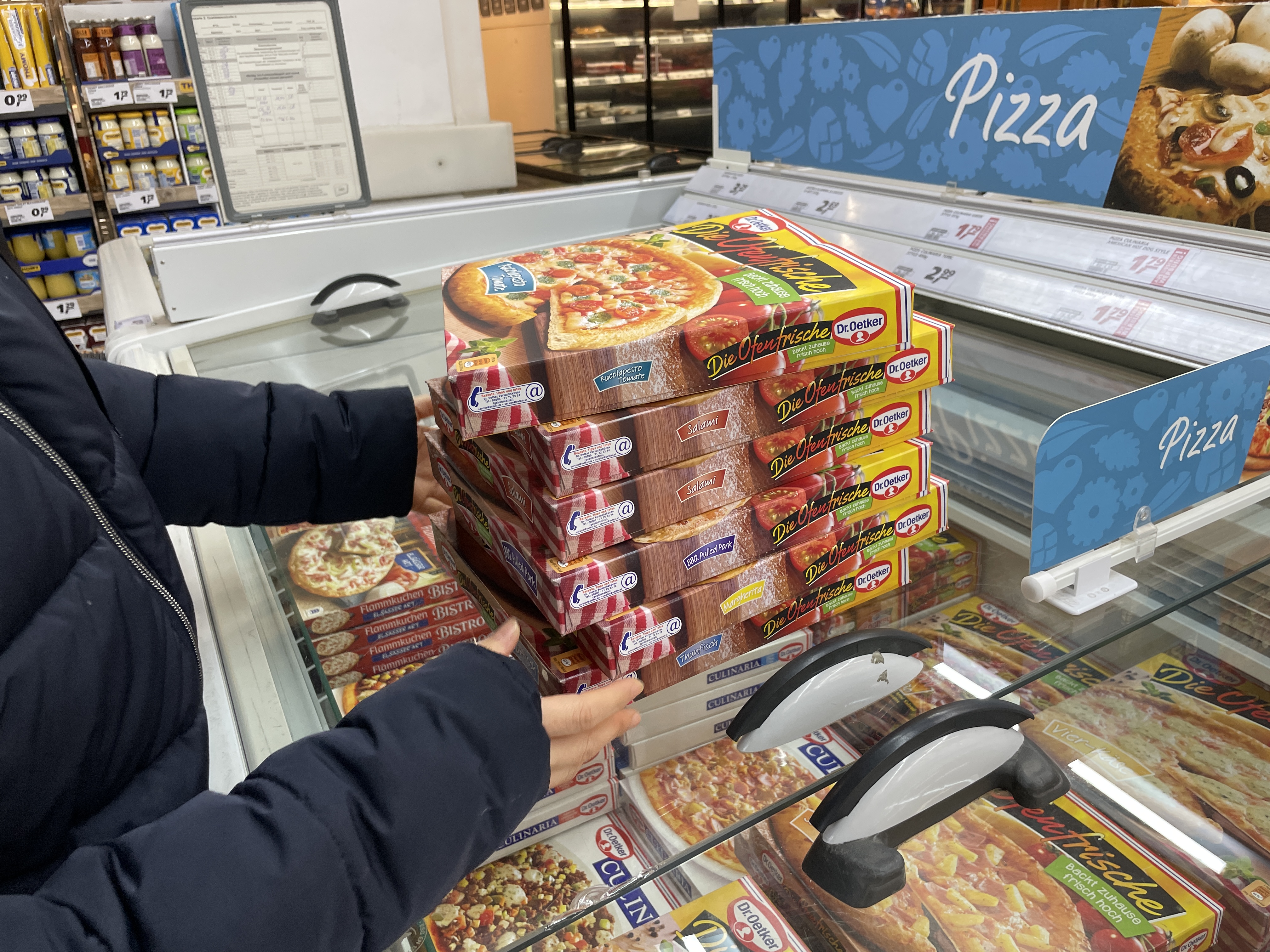 저희 가정은 독일 Real 이라는 마트를 자주 이용하는데, 생일 5일 전에 아이들에게 먹일 피자와 너겟 등 대량으로 구입했어요. 독일 마트에 가면 워낙 피자 종류가 많아서 아이들을 데리고 가면 피자 고르는데만 10분이상 소요되기도 해요. ㅎㅎ