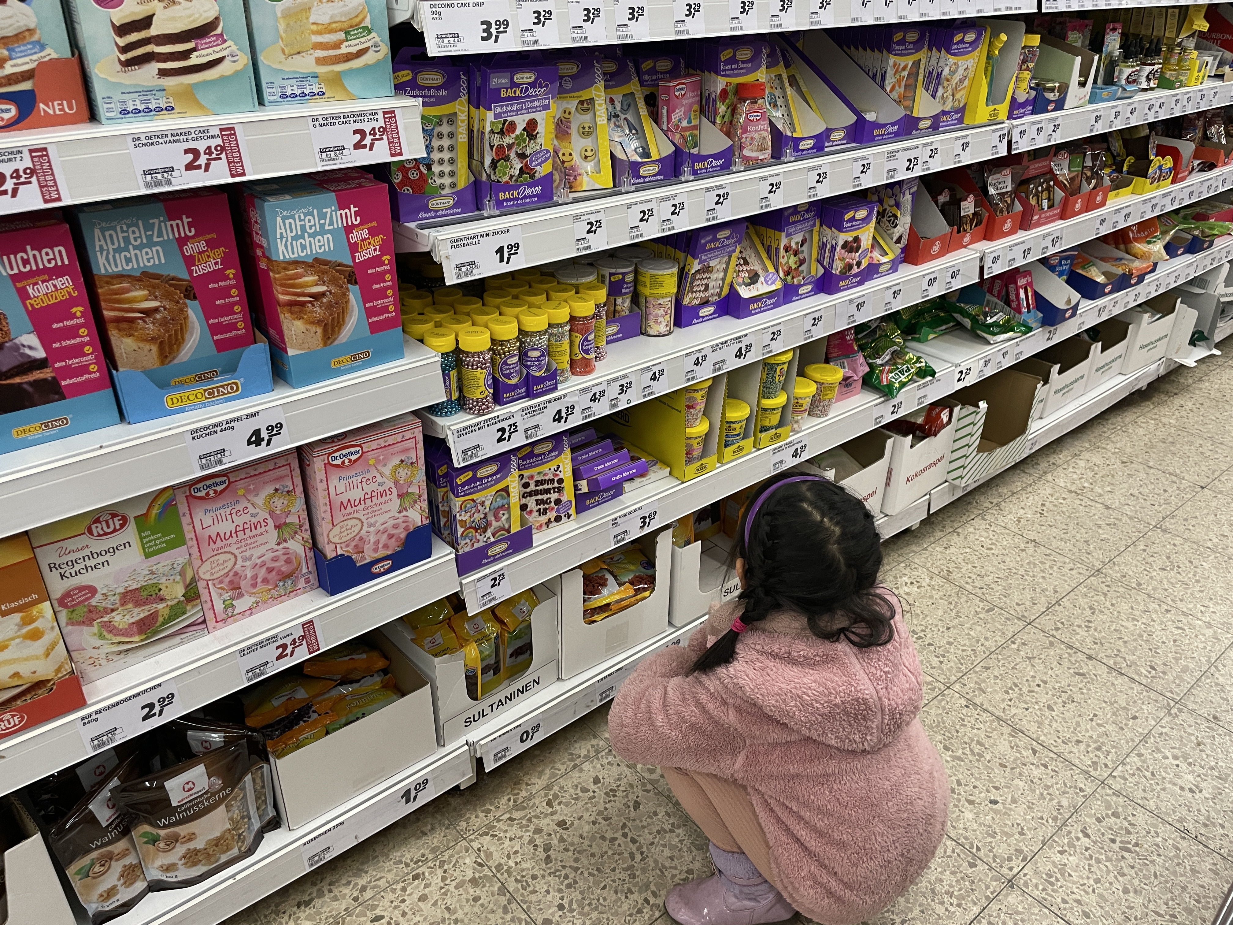 마지막으로 생일 파티에 빠져서는 안될 머핀 재료 구입하기! 독일에서는 거의 모든 가정이 머핀, 쿠키를 다 직접 만든다고 해도 과언이 아닐 정도로 생일파티때 뿐만 아니라, 평소에도 집에서 오븐으로 자주 만들어 먹습니다. 특히 아이들이 있는 가정에서는요..